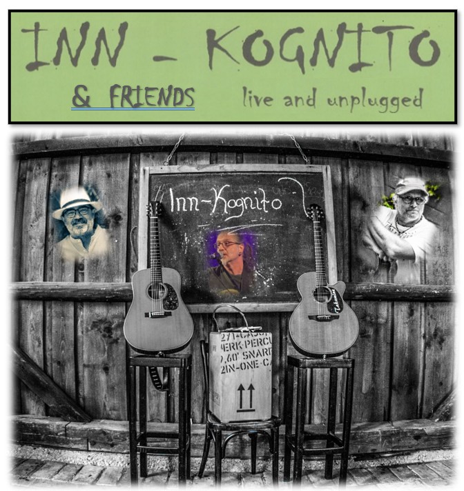 Inn-Kognito, das sind die beiden Sänger und Gitarristen „Georg Radlmaier“ und Peter „Schutti“ Schuster. Unterstützt werden die beiden von Andi Calvelli am Schlagwerk. Eintritt frei -Hut geht um.
