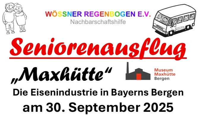 Der Wössner Regenbogen bietet – in Zusammenarbeit mit dem Seniorenbeauftragten – Tagesausflüge an und nimmt Reservierungen entgegen. Kontakt: info@woessner-regenbogen.de Tel. 08641 6994390