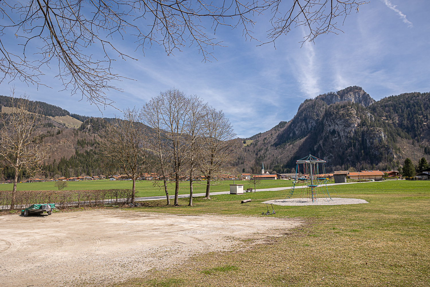 Parkplatz am Spielplatz in Hinterwössen. Das Parken ist kostenlos.